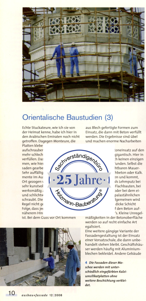 Den dritten Teil der Kolumne „Orientalische Baustudie“ der „ausbau+fassade“ (Ausgabe 12/2008) wurde über 1 Seite erstellt. Teile hiervon sind überdeckt, um die Publikationsrechte des Verlagshauses nicht zu verletzen. Für den vollständigen Artikel wenden Sie sich bitte direkt an C. Maurer Fachmedien GmbH & Co KG in Geislingen an der Steige.