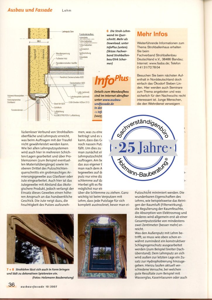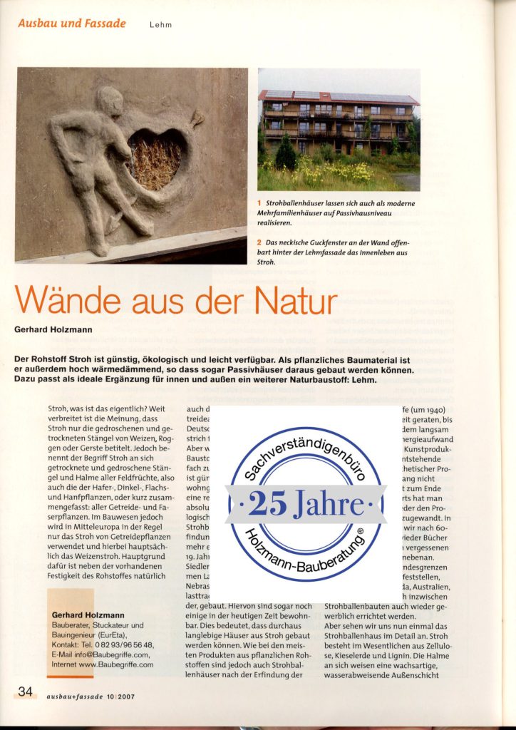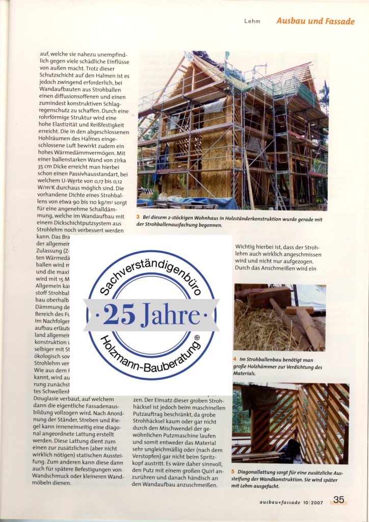 In dieser Ausgabe der Zeitreise stellen wir einen Bericht aus Oktober 2007 vor. Hierbei hat der Bausachverständige Gerhard Holzmann über das Thema “Strohballenbau” in der Zeitschrift “ausbau+fassade” berichtet.
